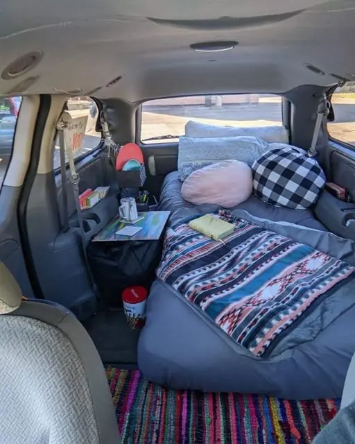 At first, I thought I’d only be on the road for a short while, just until I could figure things out. But something unexpected happened. I started to make the van my own. I thrifted a blanket here, threw in a couple of pillows, found a used air mattress that fit perfectly, and even added a little side table for my coffee and sketchbook. I even put down a rug to make it feel less like a vehicle and more like a tiny apartment on wheels. And surprisingly, it felt cozy.