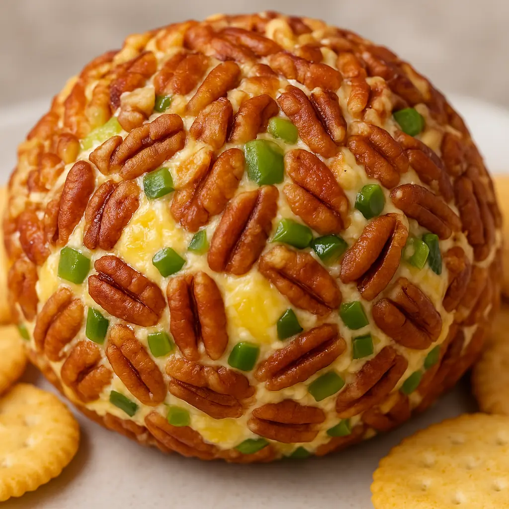 Coat with Pecans: Just before serving, take the cheeseball out of the fridge and roll it in the remaining chopped pecans. This step adds a beautiful and crunchy coating, making it look even more appetizing.
