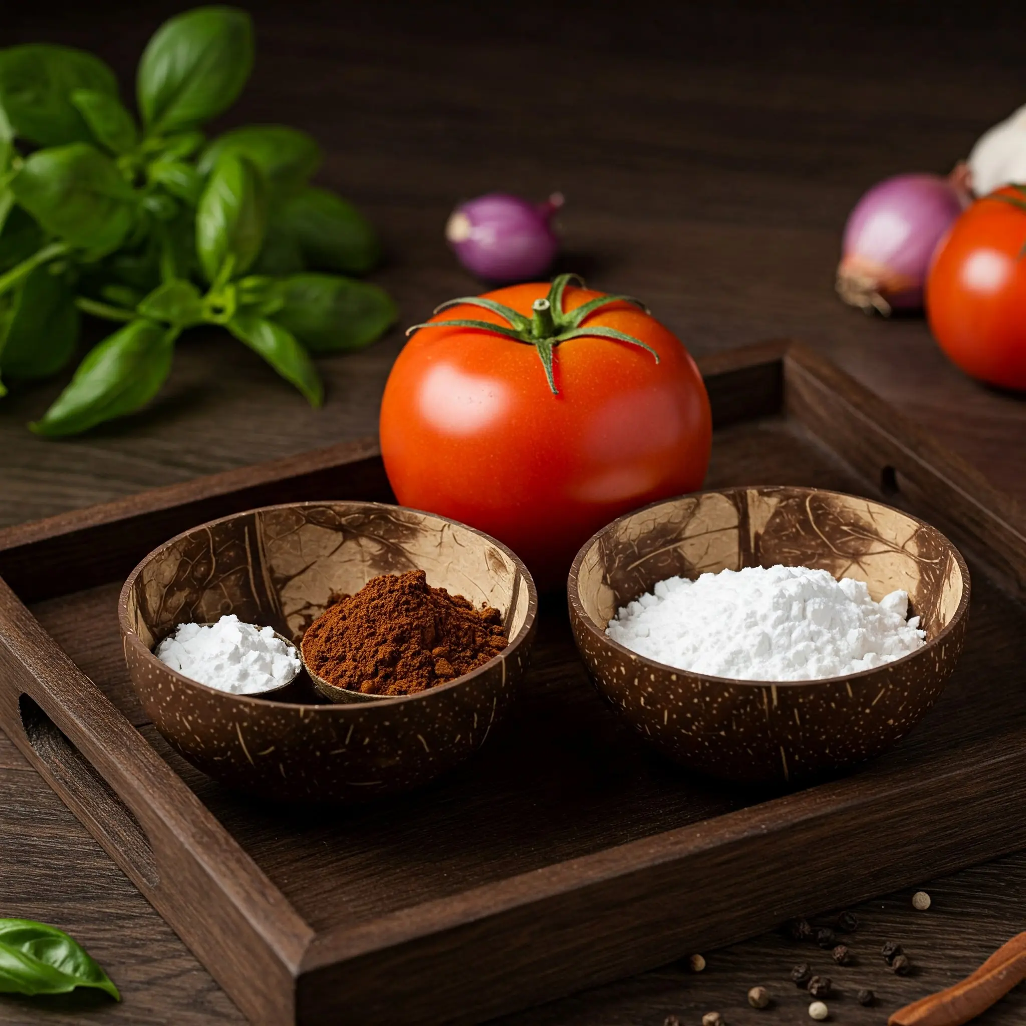 To the extracted tomato juice, add 1 teaspoon of instant coffee powder and 1 teaspoon of cornstarch. Stir the mixture well until it forms a smooth, slightly thick paste. If the paste feels too runny, you can add a pinch more cornstarch to thicken it further.