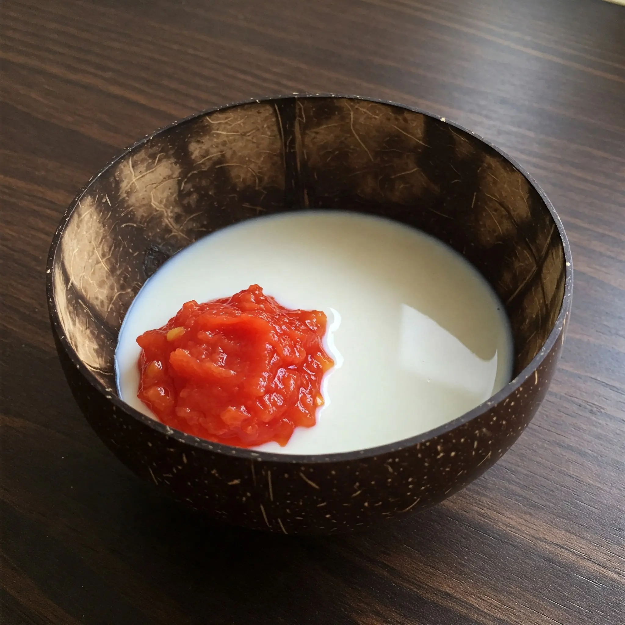 Mix the tomato pulp and milk together in a small bowl.